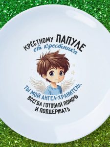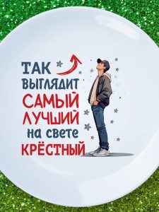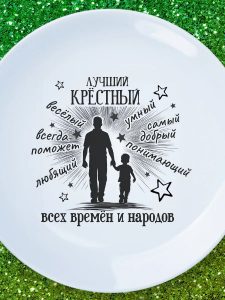 Выбрав тарелку «Крестный отец», вы создадите незабываемый подарок, который останется с вашим крестным на долгие годы, напоминая о теплых моментах и особенных праздниках. Сделайте своему крестному отцу запоминающийся сюрприз — подарите тарелку с характером и харизматичной надписью!
