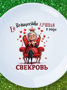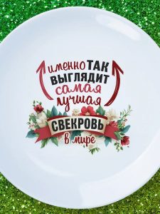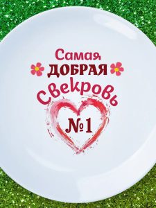 Тарелку «Лучшая в мире свекровь» можно сделать центральным элементом подарка, украсив её не только трогательной надписью, но и красивым оформлением. Надпись несет в себе глубокий смысл признательности и уважения, создавая атмосферу тепла и радости в отношениях. Такой подарок станет поводом для искренней улыбки и, возможно, даже растрогает до слез.