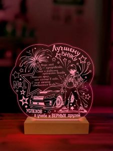 Ночник с 3D-эффектом и персональной гравировкой — идеальный подарок от внука на день рождения