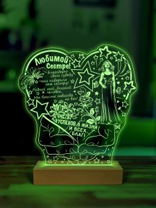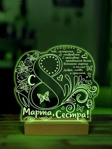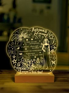 Вы можете выбрать ночник с индивидуальной надписью, что сделает подарок особенно личным и запоминающимся. Например, можно нанести на нём тёплые слова или имя сестры — это добавит ещё больше тепла и заботы, показывая, что вы вложили душу в выбор подарка.