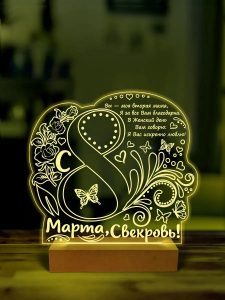 Если свекровь любит оригинальные вещи, можно выбрать ночник с индивидуальной надписью или изображением. Это будет не просто светильник, а символ внимания и заботы. Такой подарок подчеркнёт ваши тёплые чувства и сделает любой праздник особенным. Персонализированный ночник может содержать: