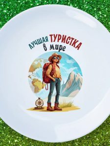 Тарелка с прикольной надписью «Туристка №1» добавляет нотку юмора в каждое путешествие и поднимет настроение в любое время. Эмблема «Лучший турист» ненавязчиво подчеркивает индивидуальность владельца и его страсть к открытиям. А яркий дизайн с красивыми рисунками и надписями делает такой подарок не только практичным, но и эстетически привлекательным.