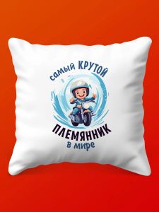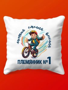 Если ваш племянник активный и жизнерадостный, эта подушка подчеркнет его индивидуальность и станет напоминанием о том, что он всегда может рассчитывать на вашу заботу и поддержку.