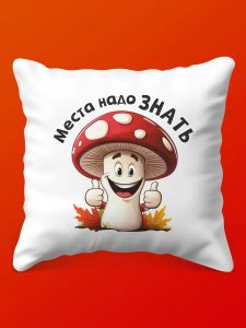 Подушка может стать не только подарком, но и сувениром для коллег или друзей. Ее небольшие размеры (35х35 см) позволяют легко брать подушку с собой на природу или просто украсить автомобиль. Кто знает, возможно, она станет вашим спутником в новых грибных приключениях.