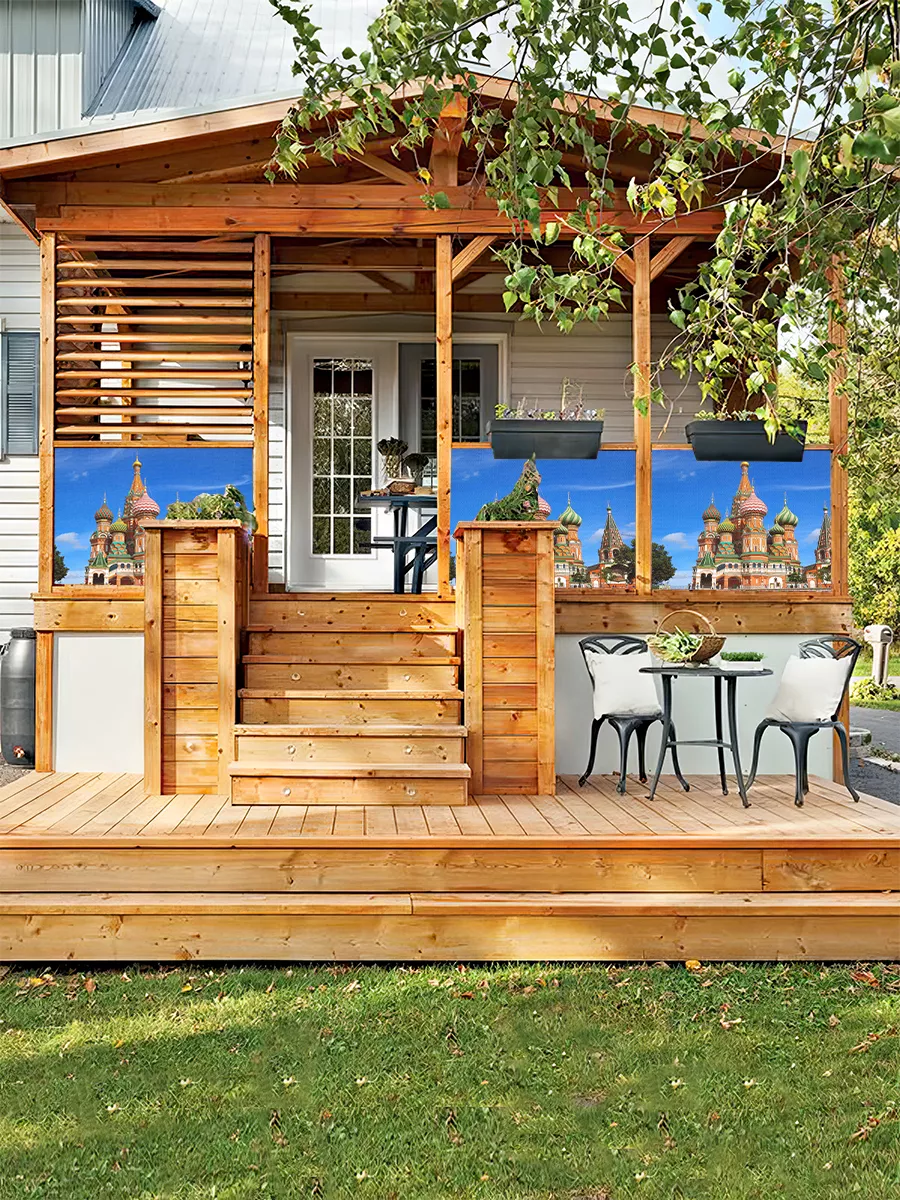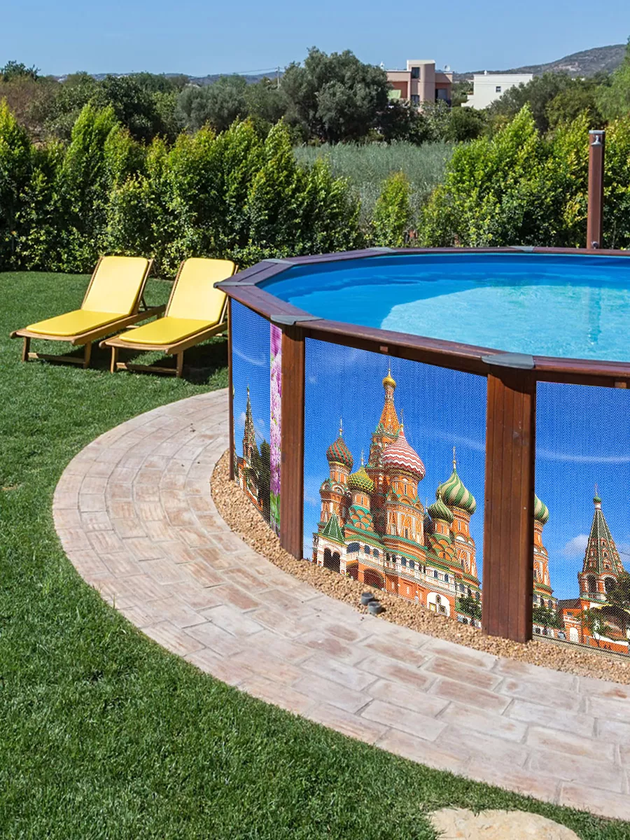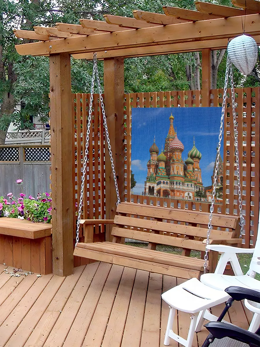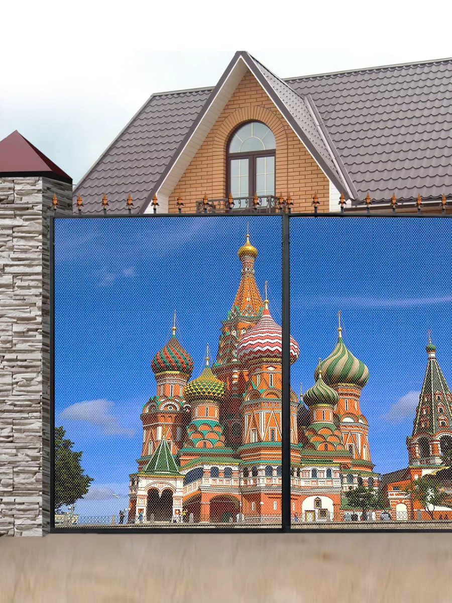 Фотосетка с изображением Храма Василия Блаженного станет ярким акцентом на вашем участке, привлекающим внимание и вызывающим восхищение гостей. Это эстетичное и практичное решение для быстрого обновления внешнего вида любых объектов на вашей территории.