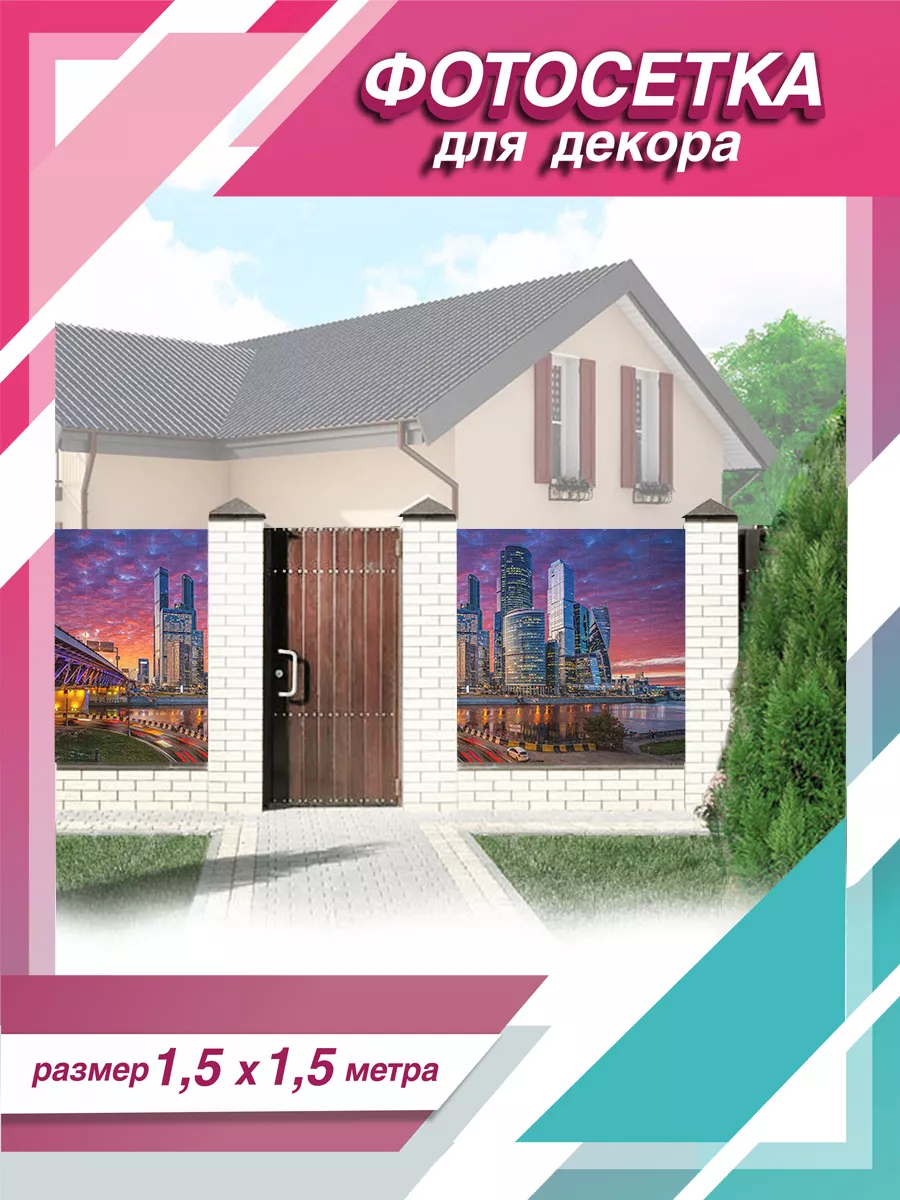 Декоративная фотосетка с изображением Москва Сити — это современное решение для преображения любого пространства. Представляем вашему вниманию высококачественную фотосетку размером 1,5 х 1,5 м, изготовленную из прочного ПВХ материала с перфорацией, которая станет ярким акцентом в оформлении вашей территории.