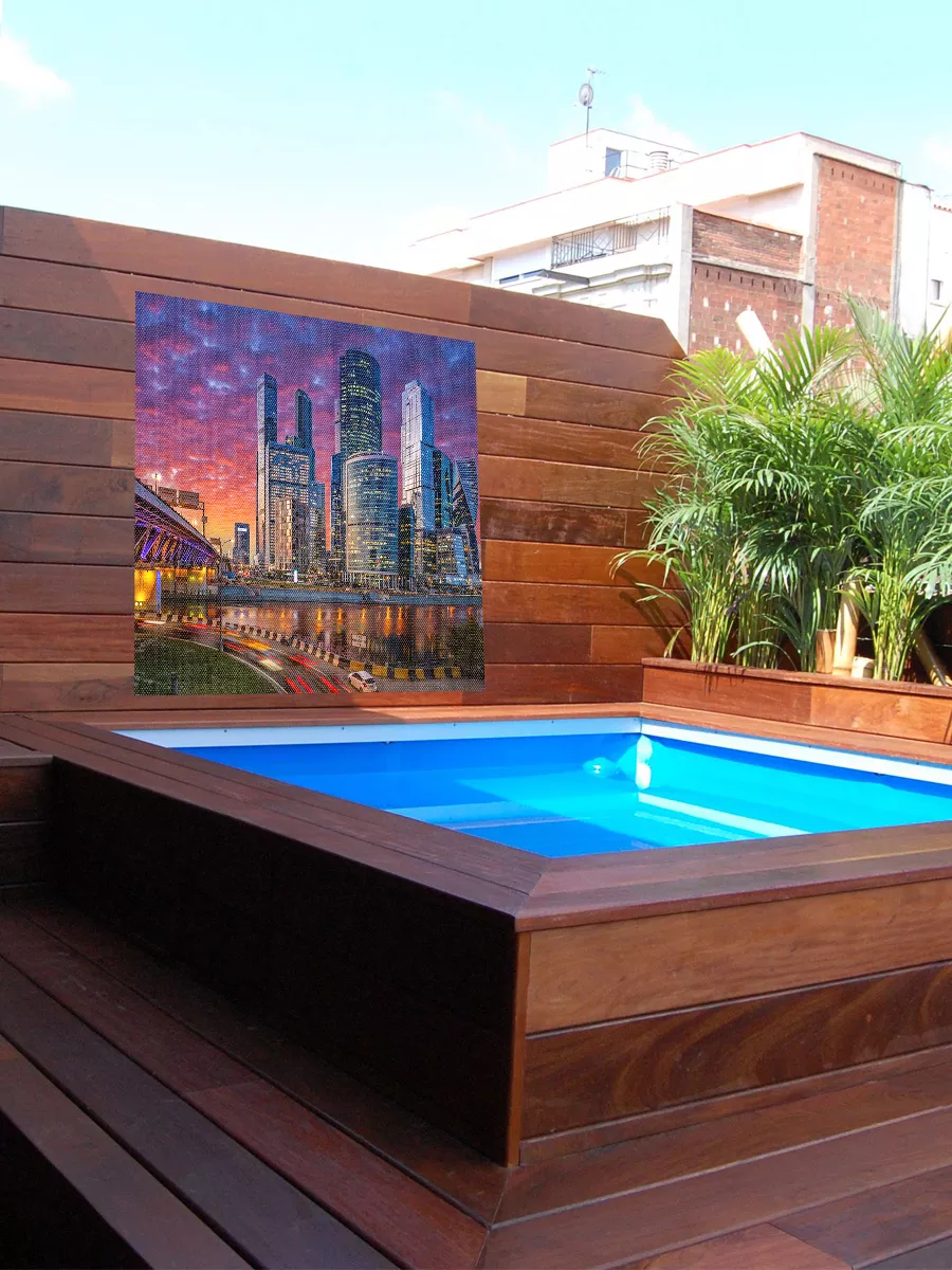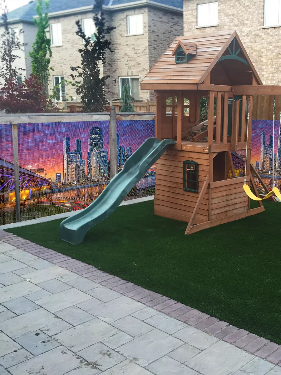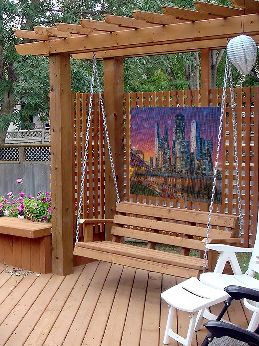 Фотосетка — это эстетичное и практичное решение из прочного перфорированного материала с фотопечатью, которое позволяет быстро обновить вид забора, беседки, терассы или фасада.