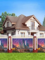 - Универсальность применения — подходит для декорирования заборов, строительных ограждений, беседок, террас и других объектов