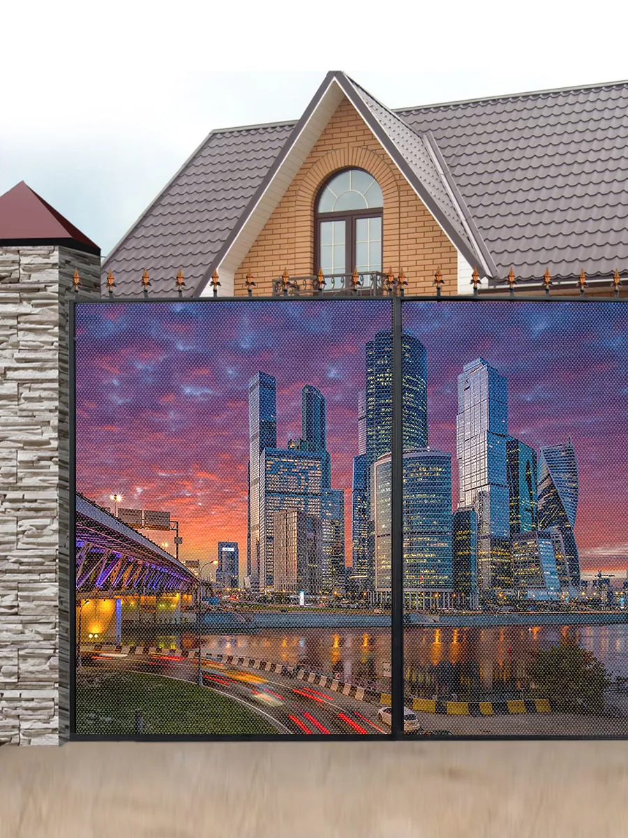 Фотосетка с изображением Москва Сити — это эстетичное и практичное решение, которое позволит быстро и без существенных затрат преобразить пространство, придав ему современный вид. Благодаря перфорированной структуре материала, изображение хорошо просматривается с близкого расстояния, но при этом обеспечивает некоторую приватность, что делает его идеальным выбором для городских участков и дач, расположенных вблизи соседей.