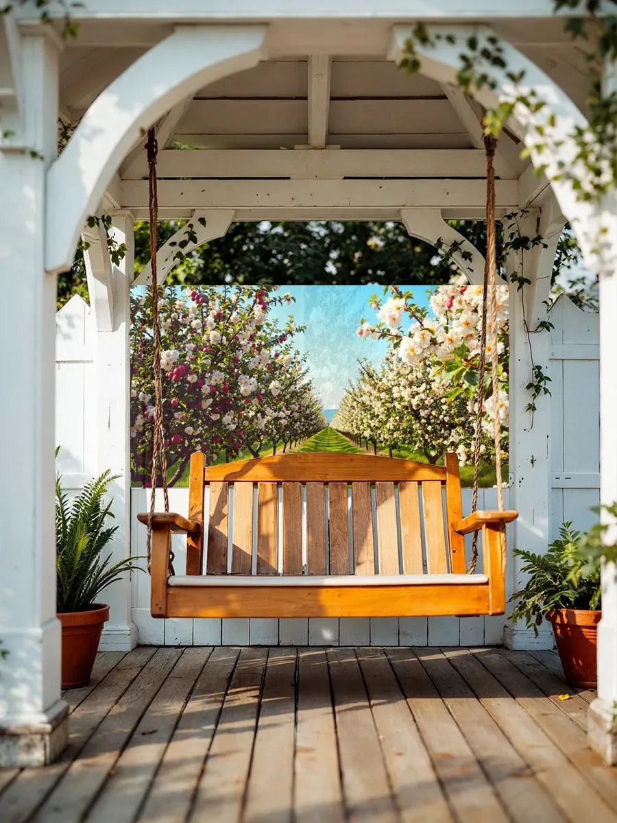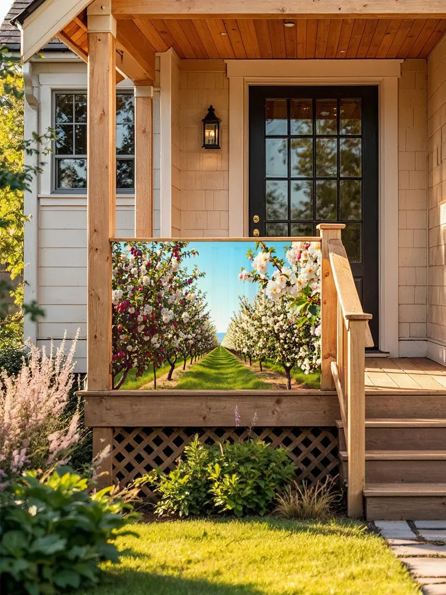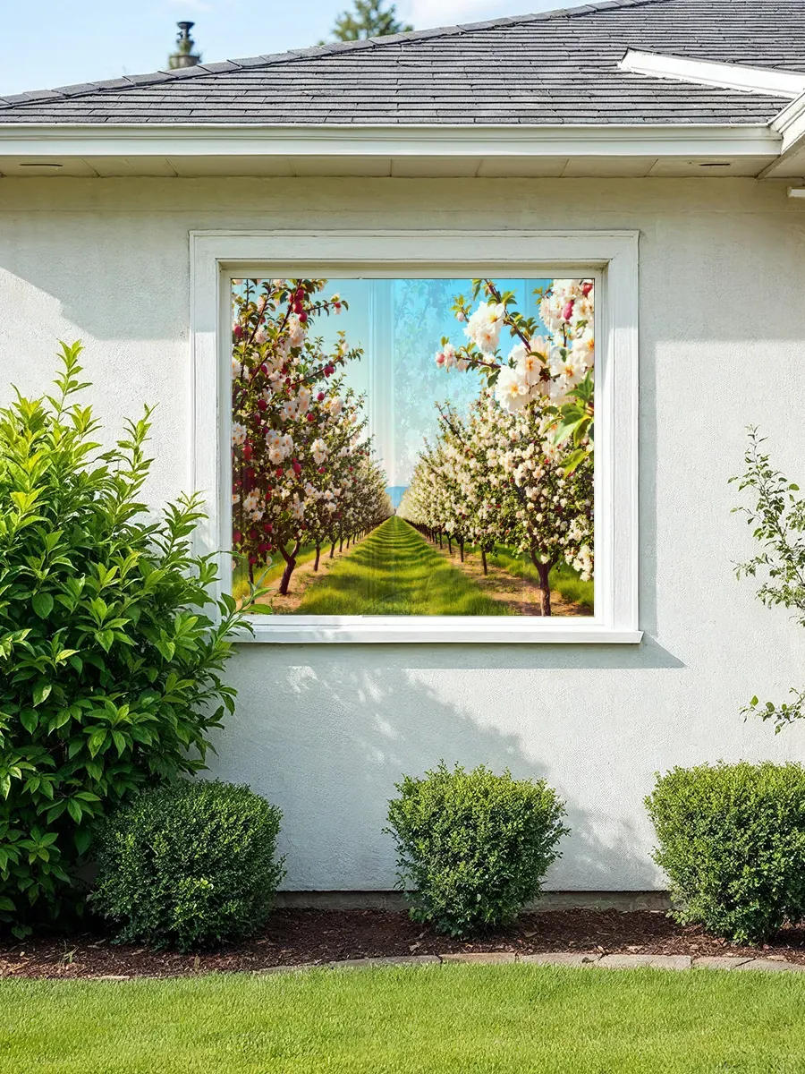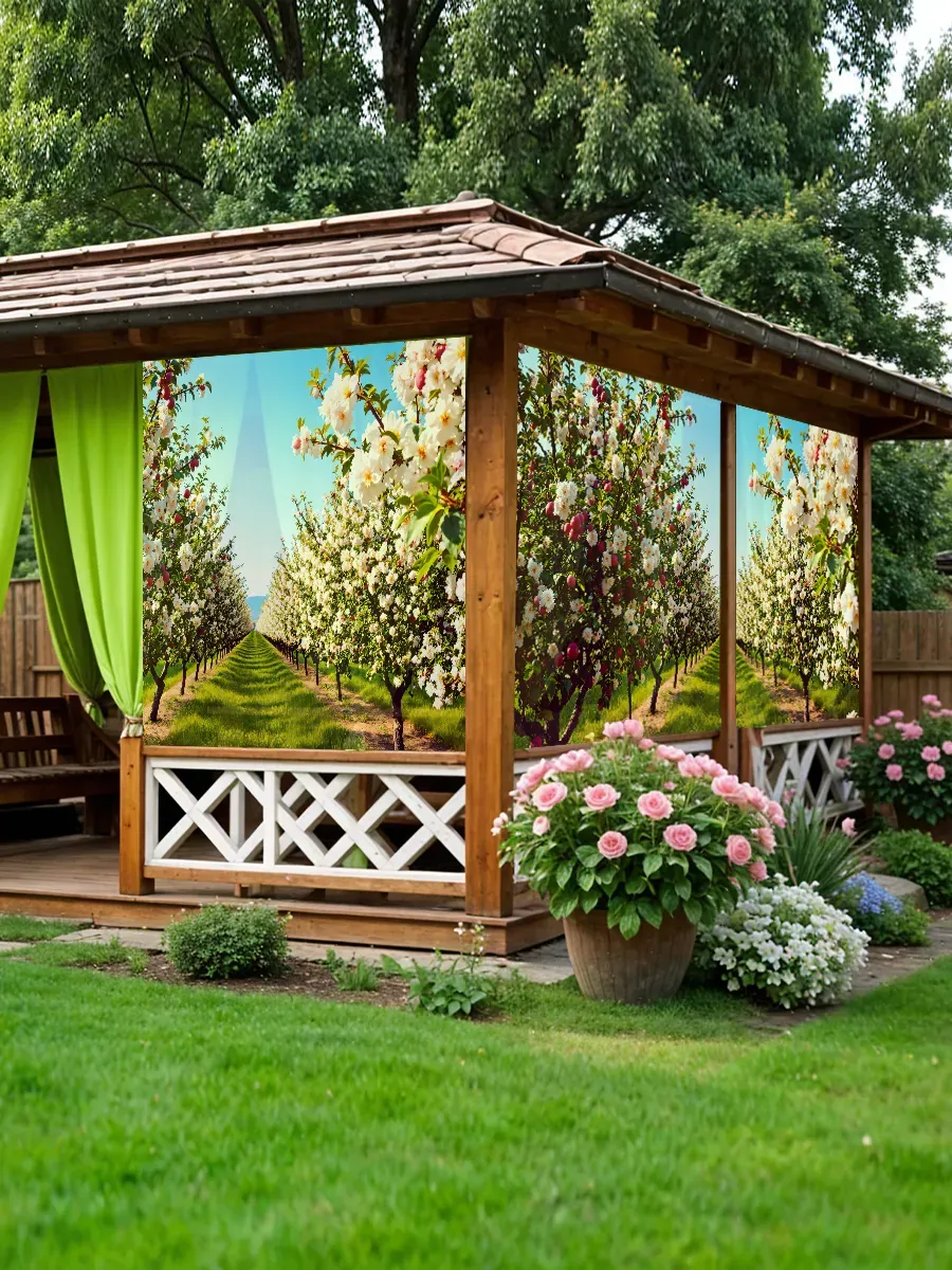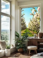 • Натуральный дизайн – реалистичное изображение цветущего яблоневого сада создаёт эффект присутствия природы, привнося гармонию и спокойствие в любое пространство.