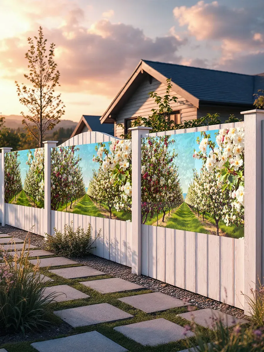 Фотофасад «Яблоневый сад» размером 1,5х1,5 м – это изысканное декоративное решение, которое мгновенно преобразит любую поверхность, наполнив её атмосферой цветущего сада. Изготовленный из высококачественной полиэфирной сетки, этот фотофасад сочетает в себе эстетическую привлекательность и практичность, позволяя быстро обновить внешний вид забора, беседки, террасы или фасада здания.
