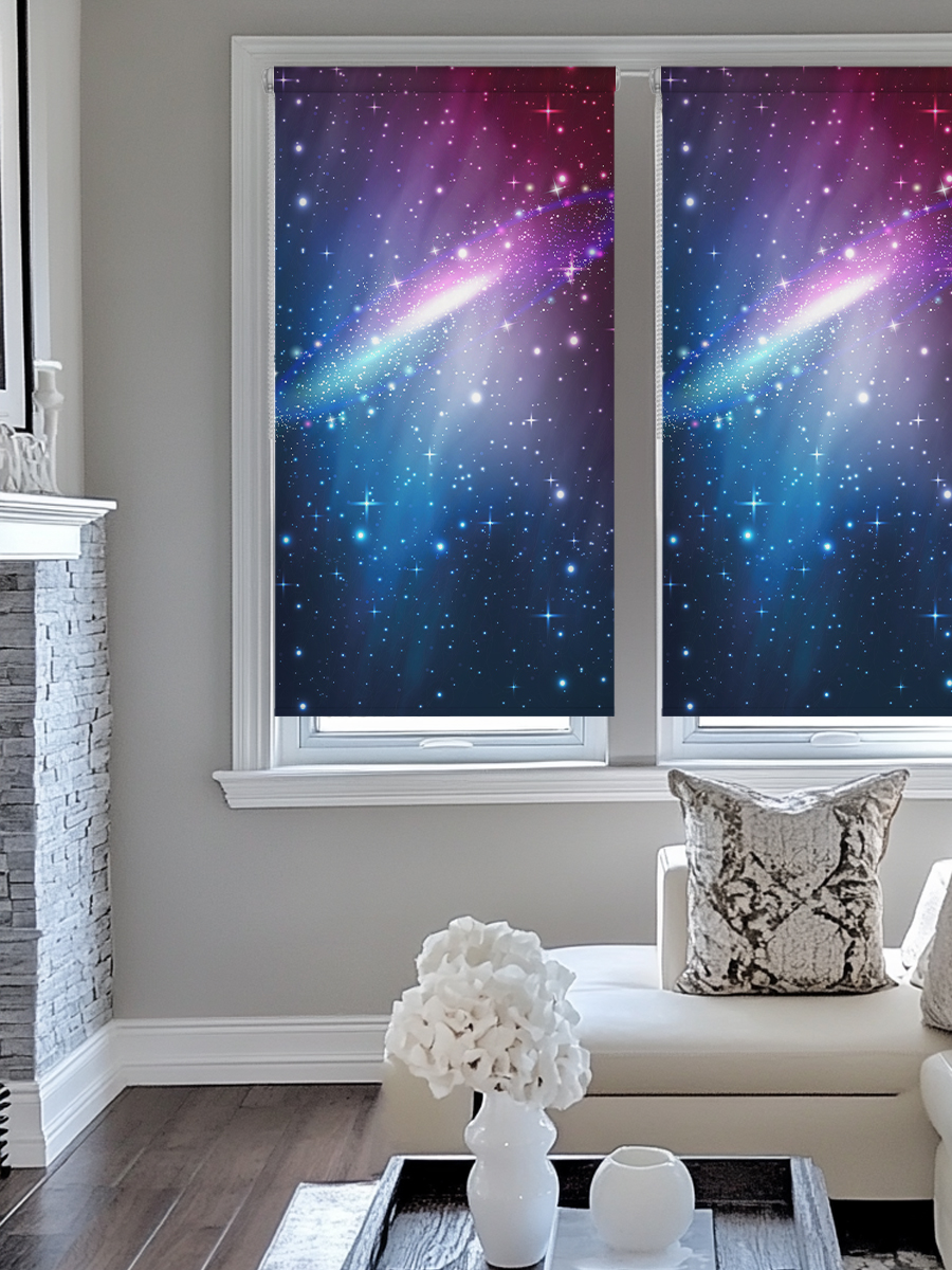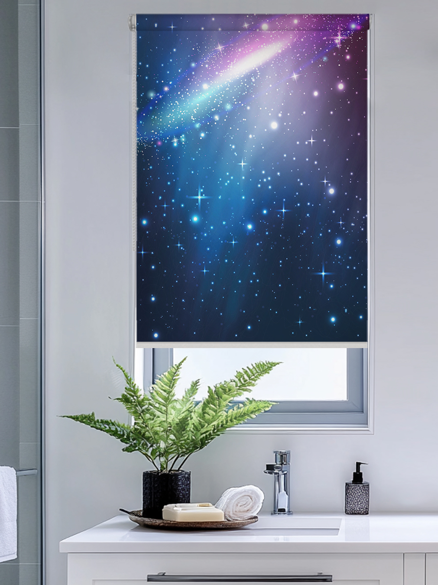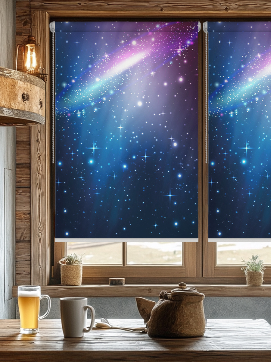 Наши рулонные шторы с космическим принтом – это не просто элемент декора, а настоящее произведение искусства, которое добавит индивидуальности вашему интерьеру. Изображение бескрайнего космоса с его галактиками, звездами и планетами создает особую атмосферу и визуально расширяет пространство.
