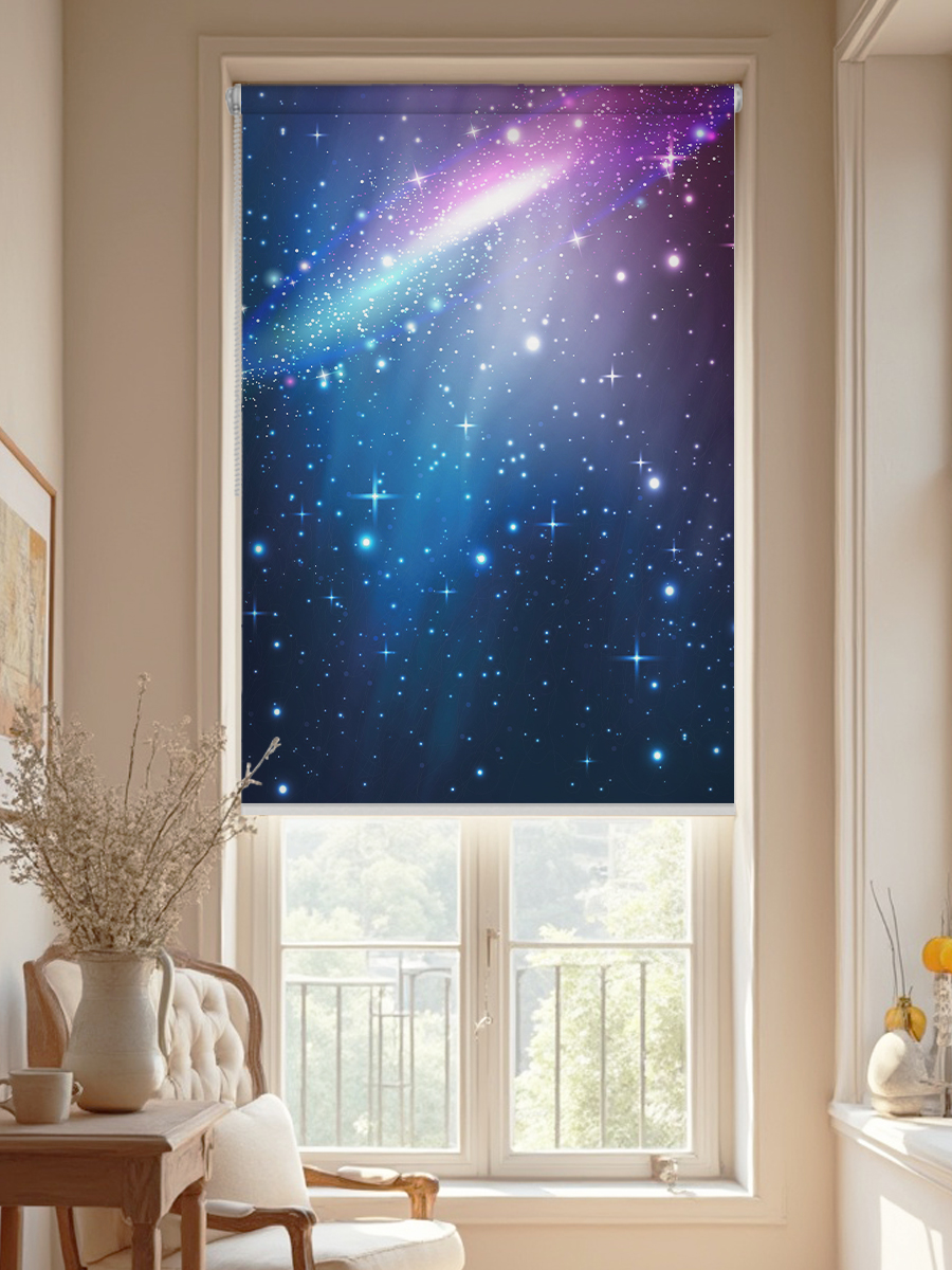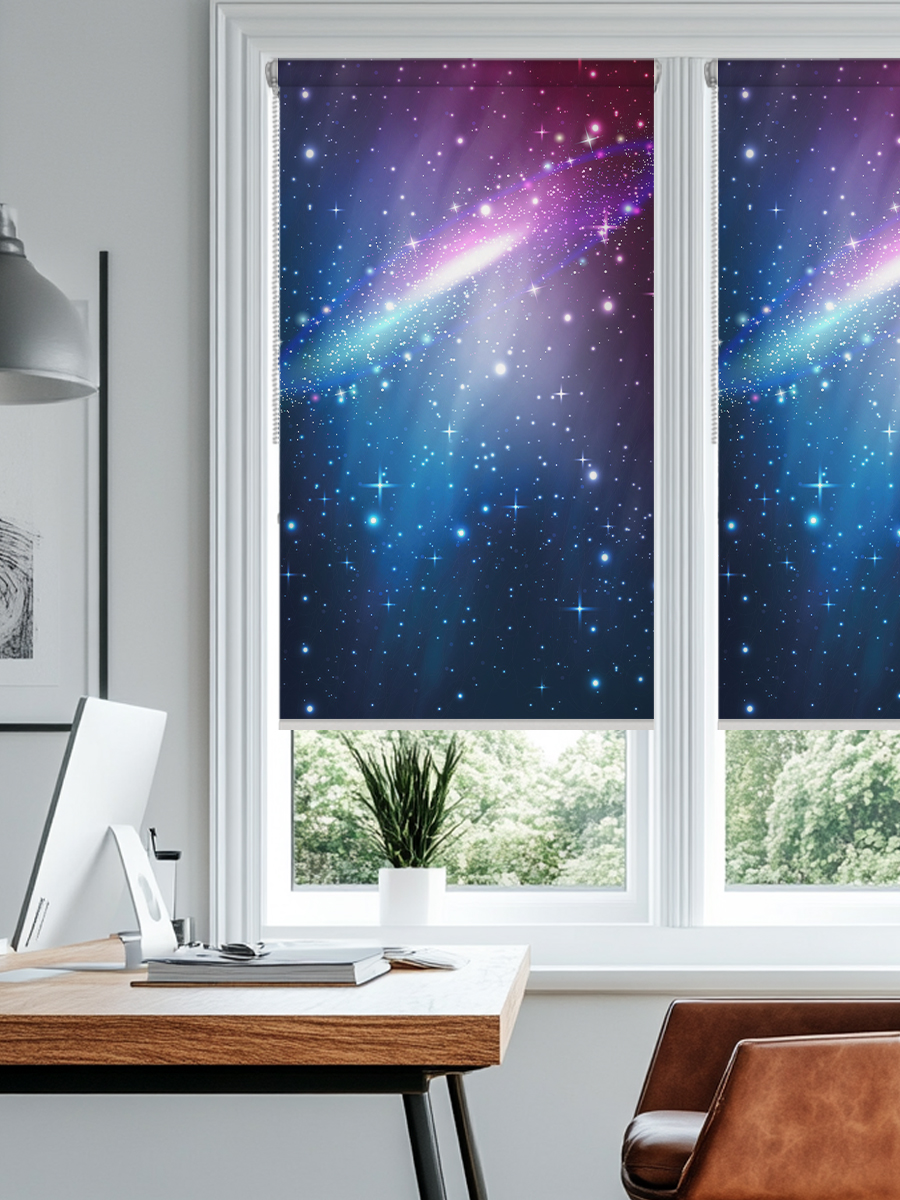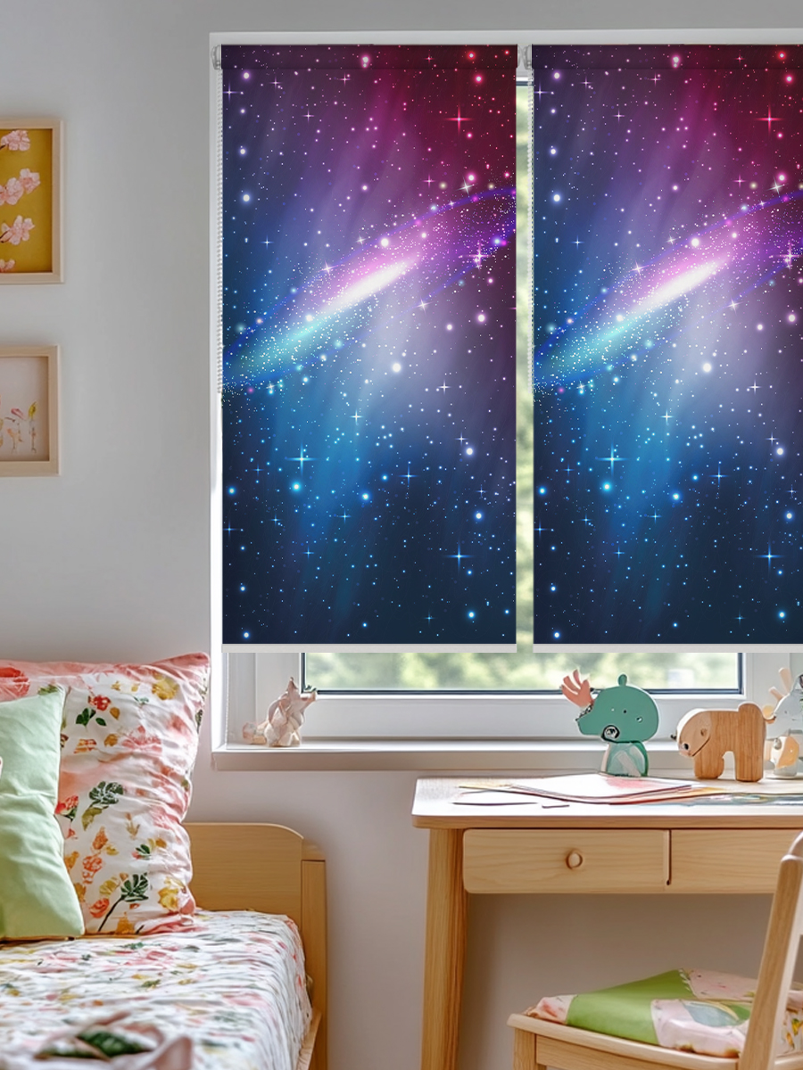 Наши рулонные шторы с космическим принтом – это не просто элемент декора, а настоящее произведение искусства, которое добавит индивидуальности вашему интерьеру. Изображение бескрайнего космоса с его галактиками, звездами и планетами создает особую атмосферу и визуально расширяет пространство.