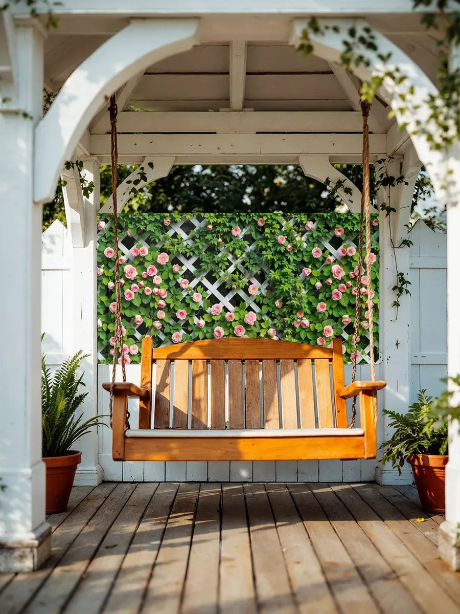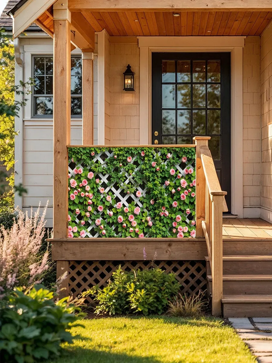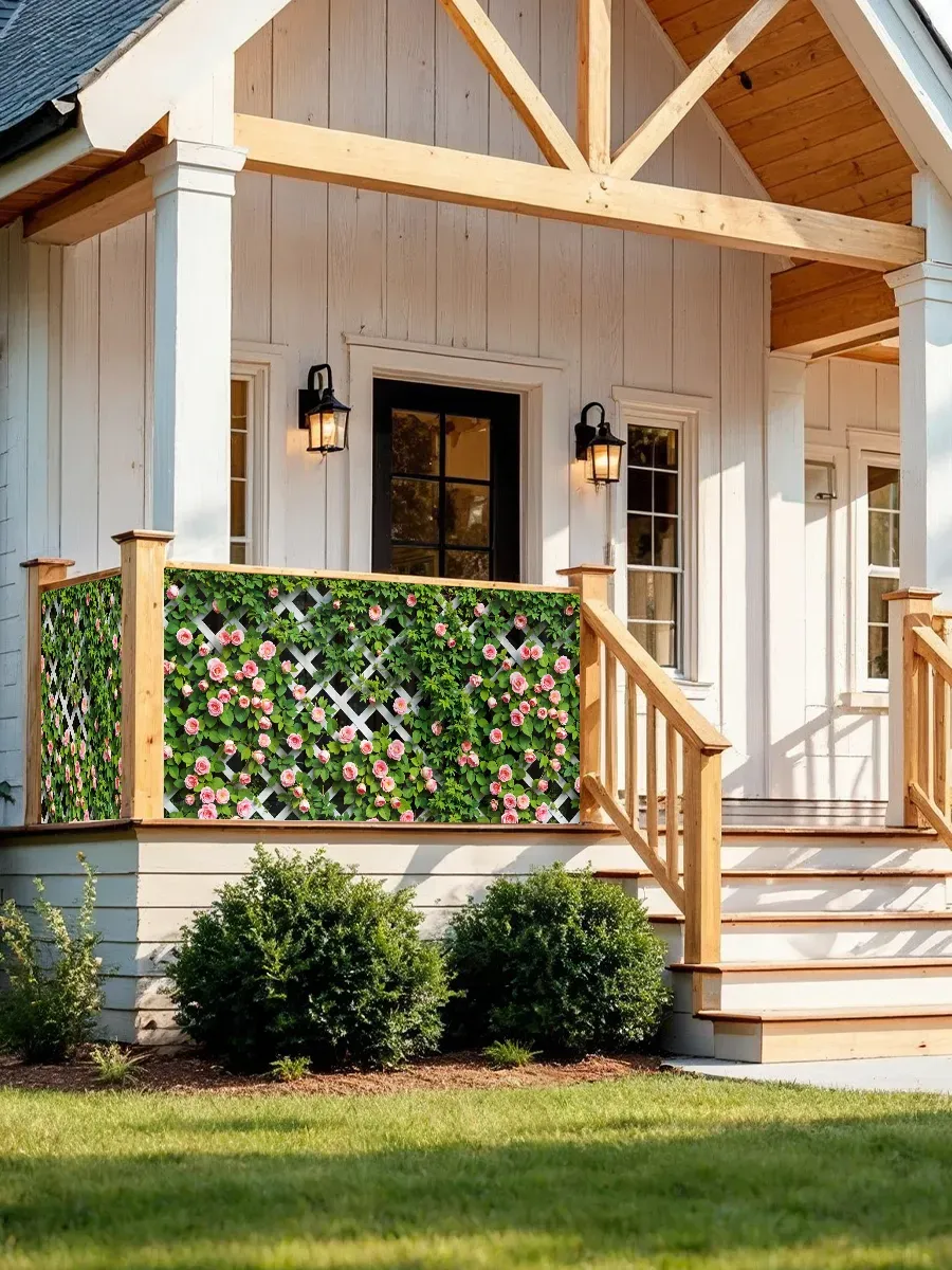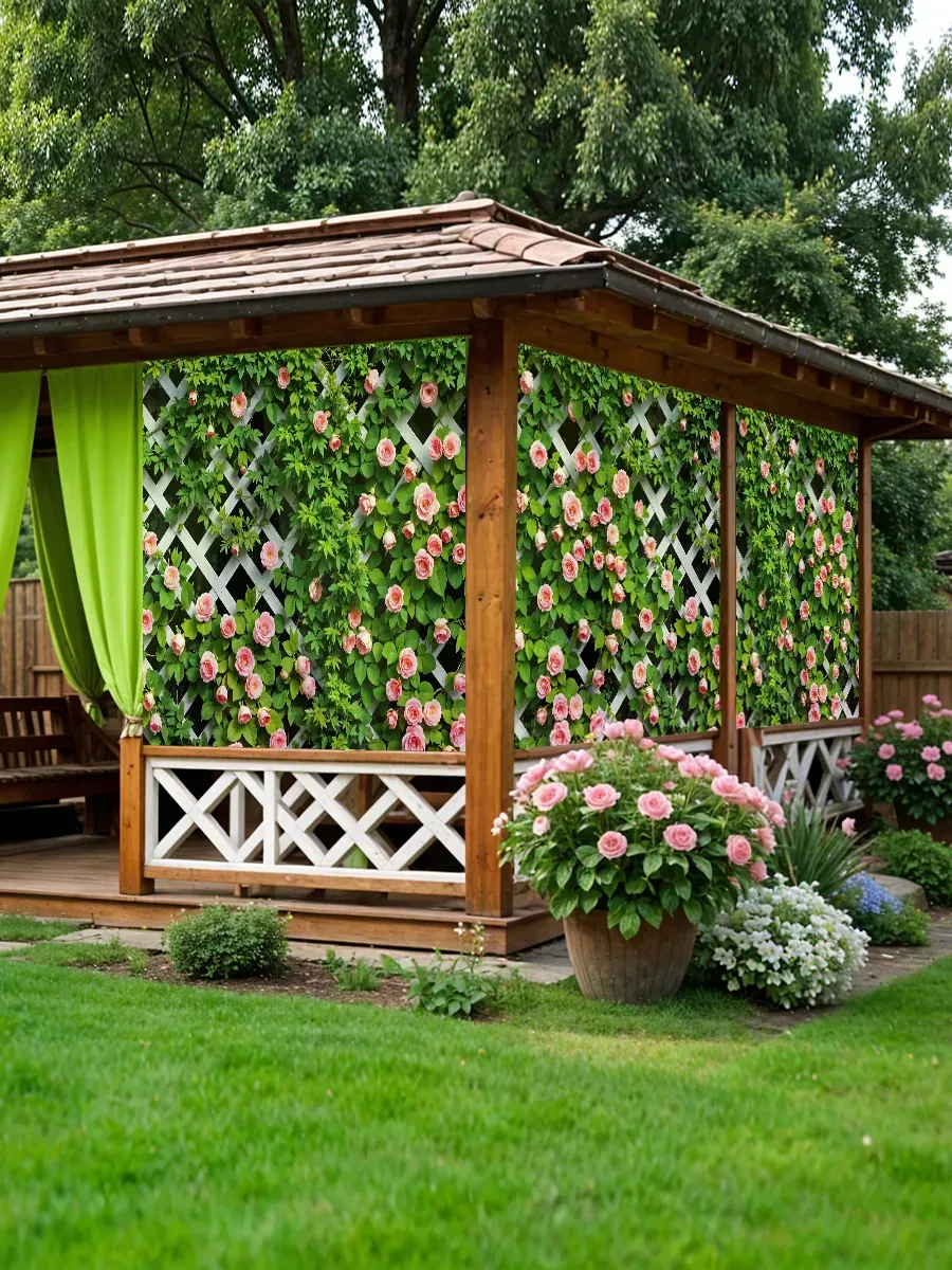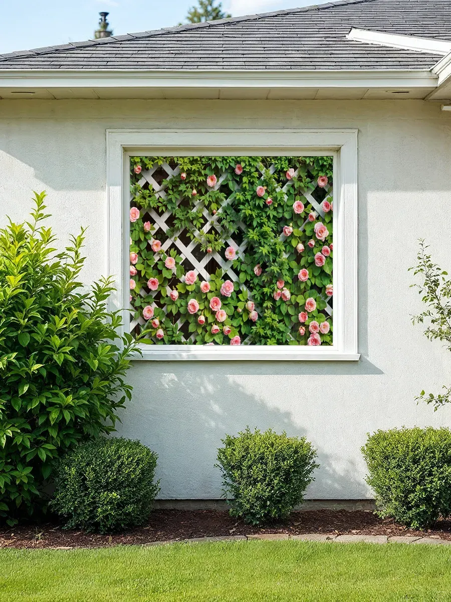 Фотосетка с мелкими розами может использоваться не только для декорирования заборов, но и для оформления: