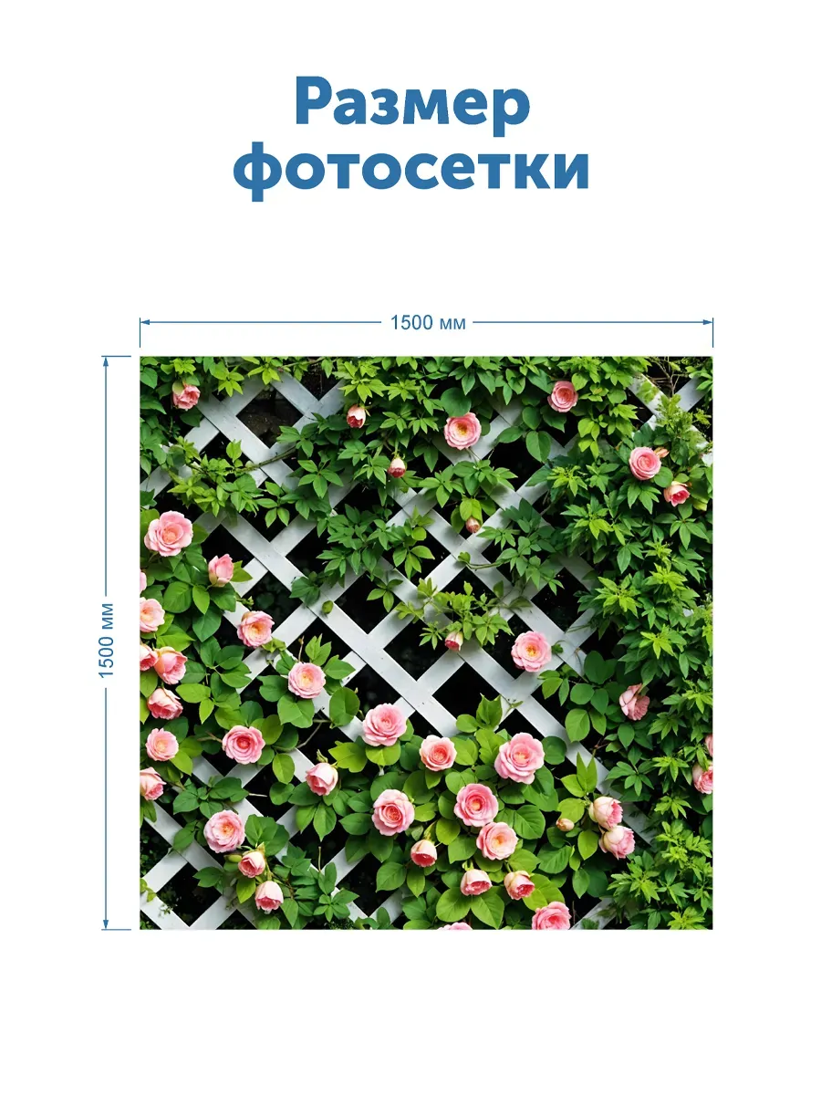 Фотосетка с изображением мелких роз — это элегантное декоративное решение, которое мгновенно преобразит внешний вид вашего забора, беседки или террасы. Изготовленная из высококачественной полиэфирной ткани размером 1,5х1,5 метра, эта сетка сочетает в себе эстетическую привлекательность и практичность использования.