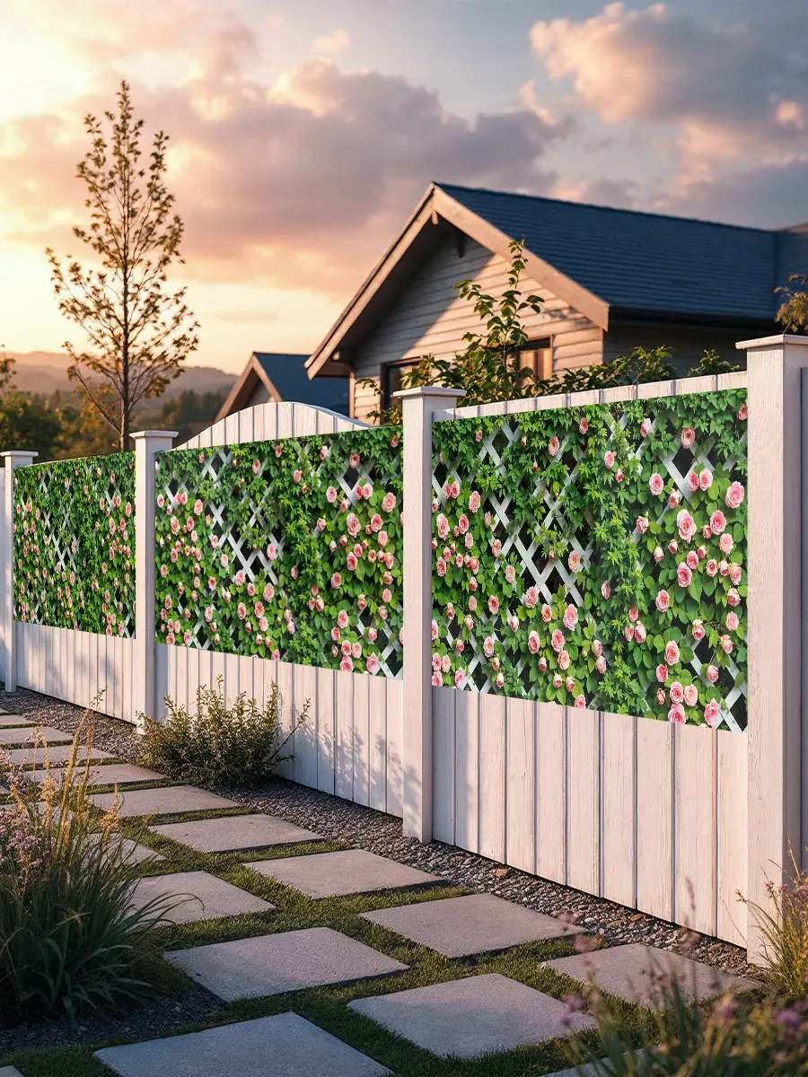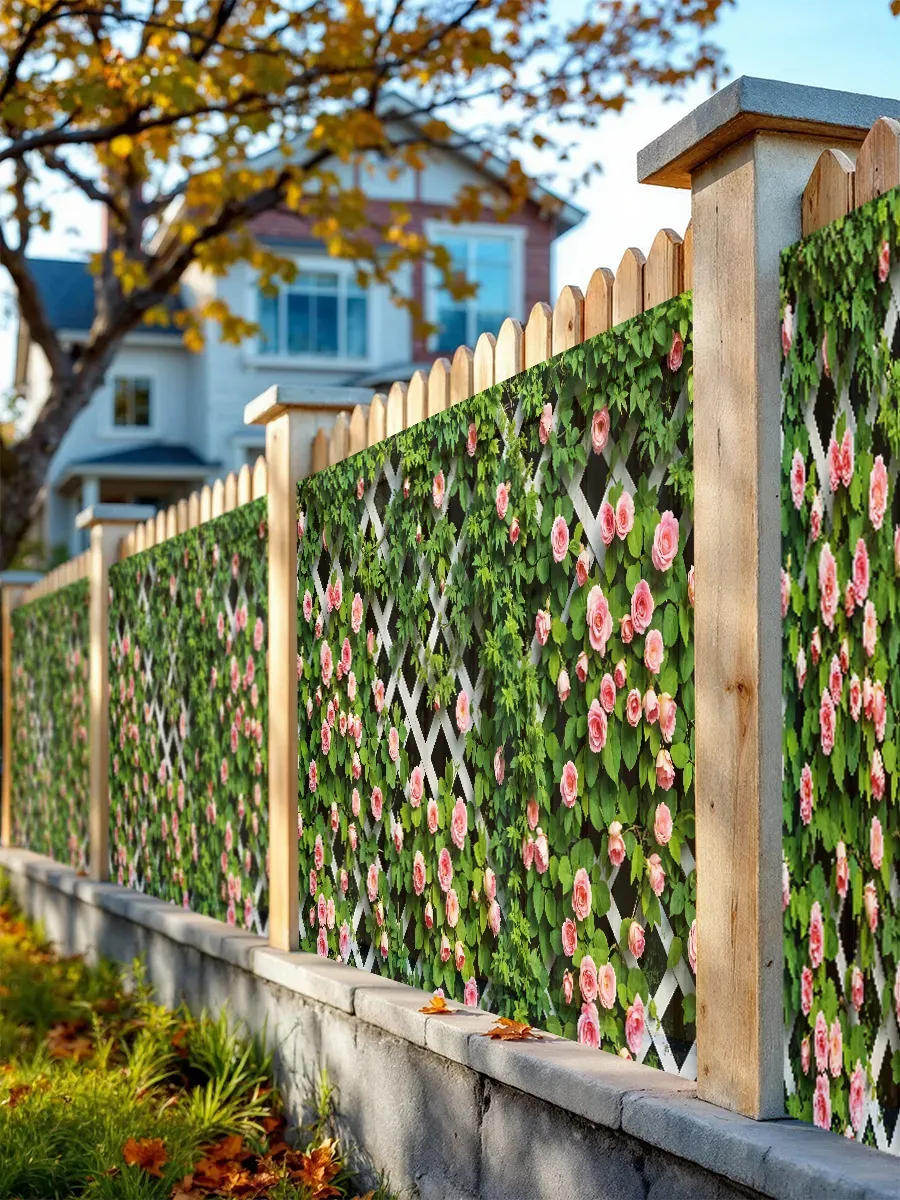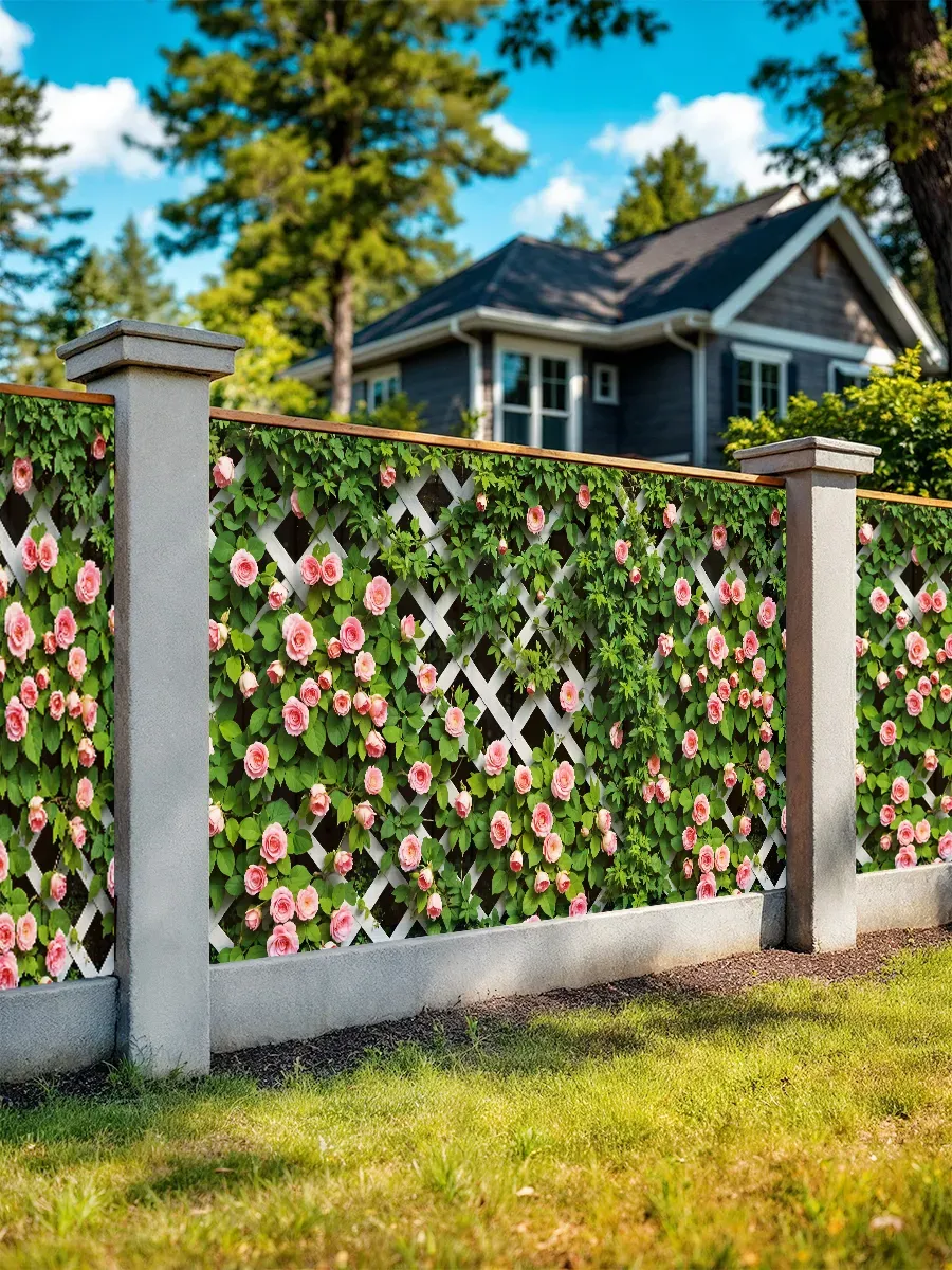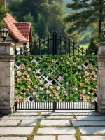 Изображение мелких роз выполнено с использованием современных технологий печати, что гарантирует сохранение яркости и четкости рисунка даже после длительного нахождения под открытым небом. Нежные розы на сетке создадут романтическую атмосферу и станут изысканным дополнением ландшафтного дизайна вашего участка.