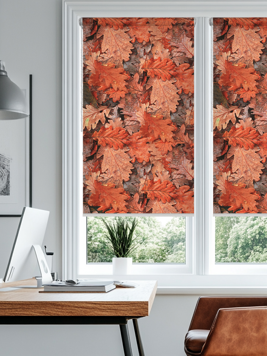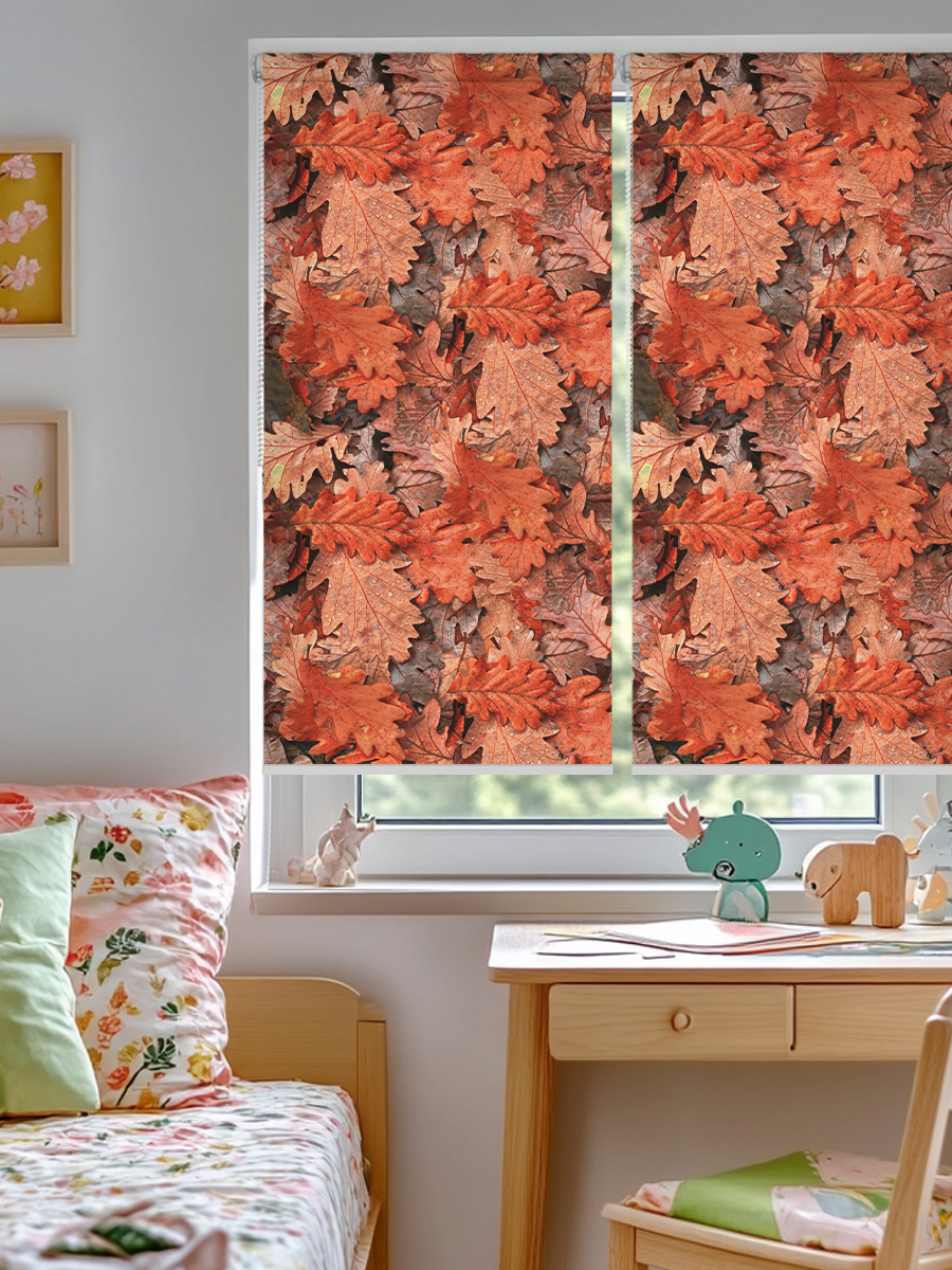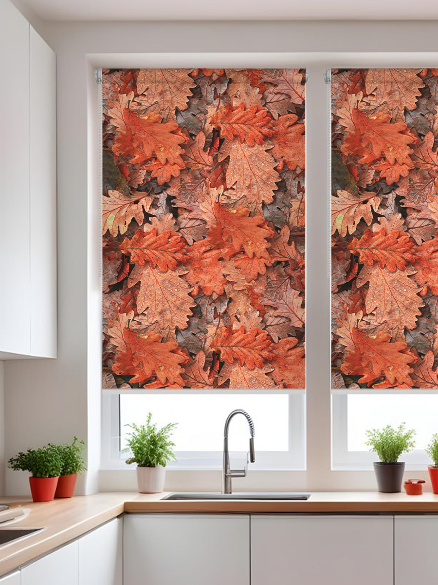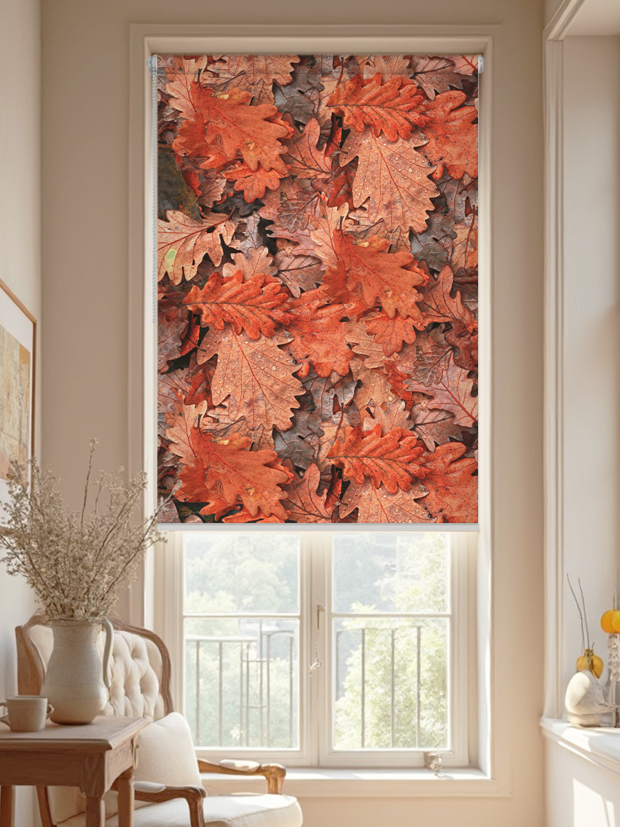 Рулонная штора с 3D принтом «Листья дуба» – стильная защита от солнца без сверления