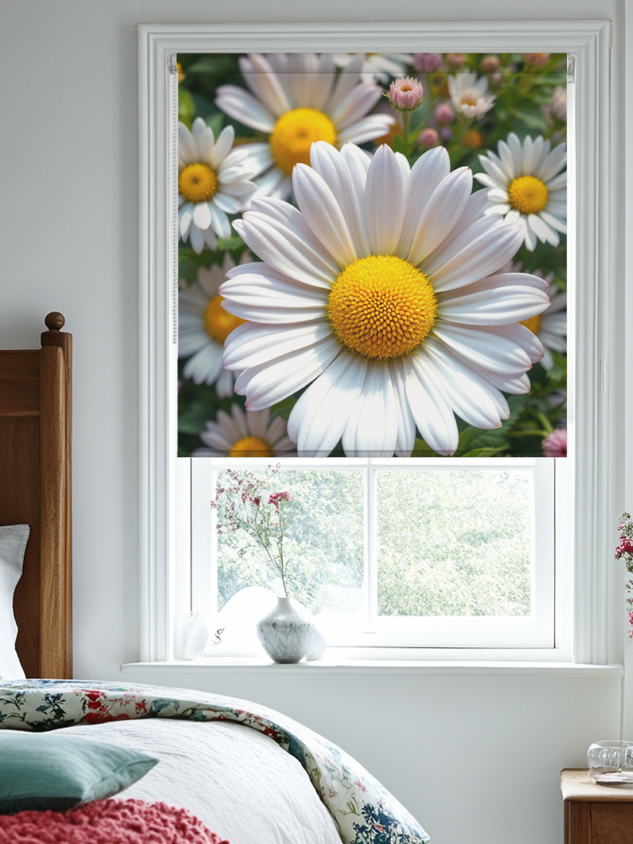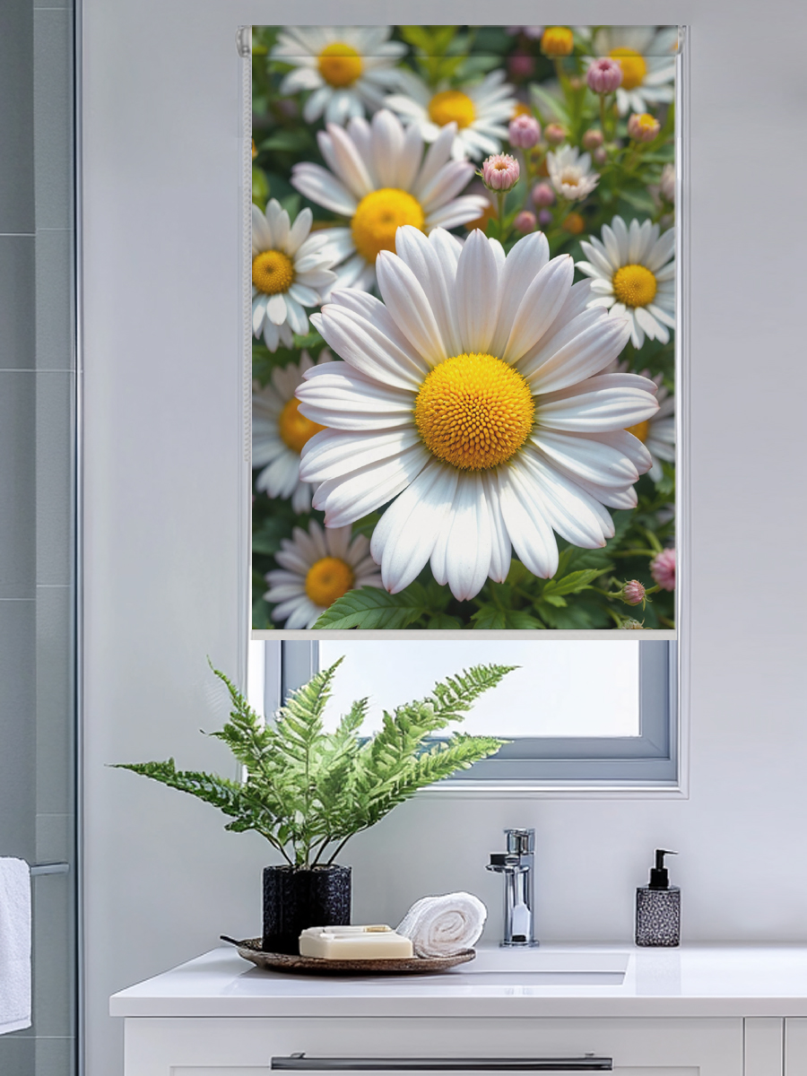 Рулонная штора с 3D принтом «Ромашки» – яркий акцент для вашего интерьера