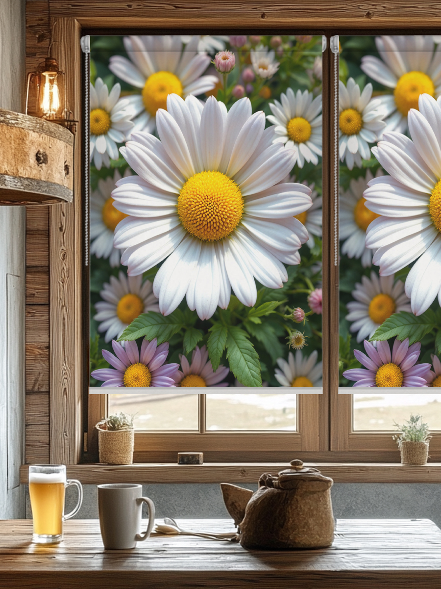 Особая технология нанесения 3D-изображения гарантирует, что яркие ромашки на полотне не потеряют своей привлекательности даже после длительной эксплуатации. Принт устойчив к выгоранию на солнце, что особенно важно для окон, выходящих на солнечную сторону.