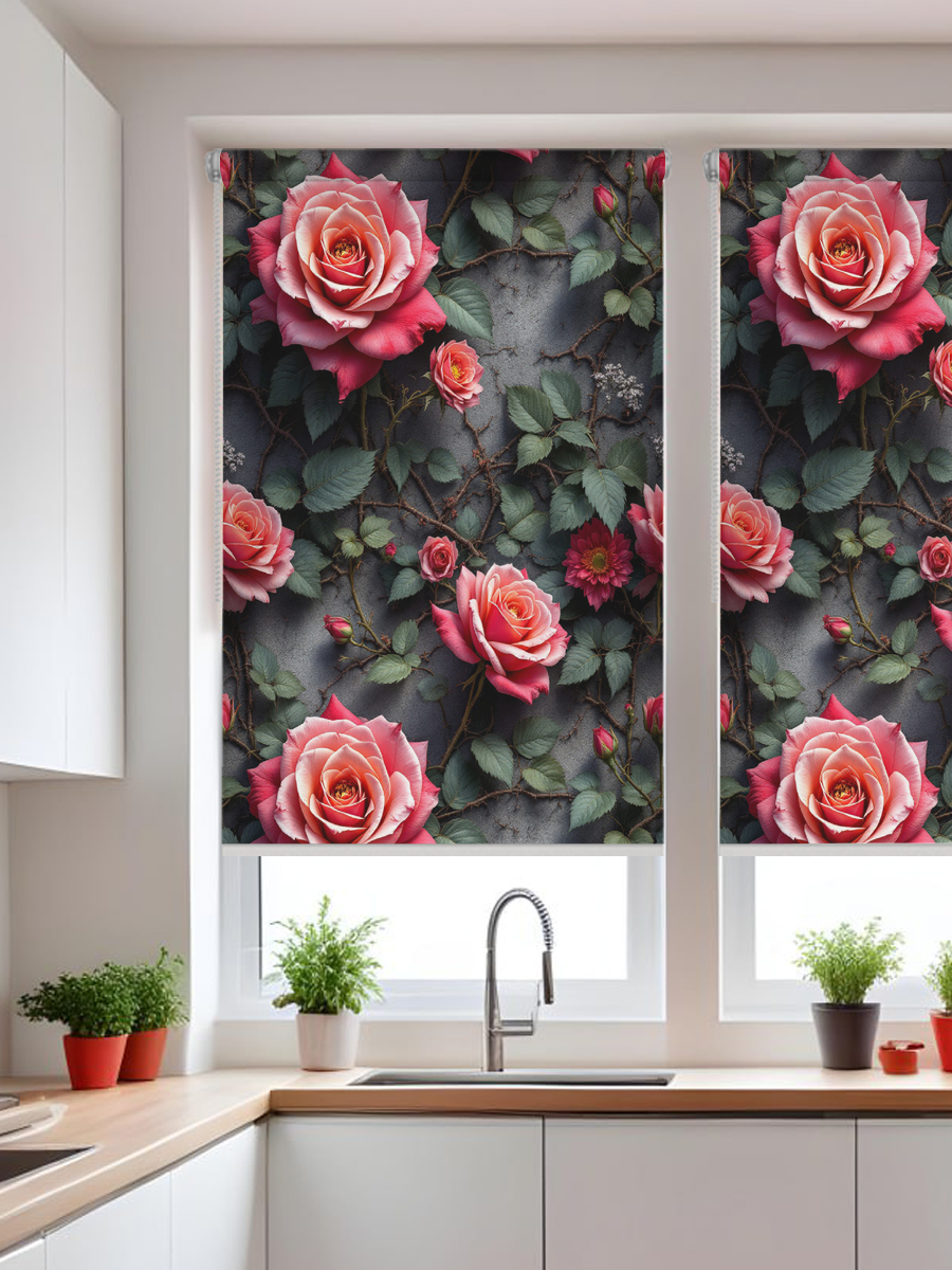Рулонная штора блэкаут с 3D принтом «Розы» — элегантное решение для вашего интерьера