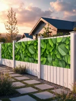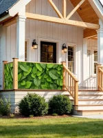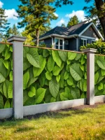 Изображение зелени органично вписывается в любой ландшафтный дизайн, дополняя и подчеркивая естественную красоту вашего сада или участка. Фотофасад создает иллюзию дополнительного озеленения даже в тех местах, где высадка растений невозможна.
